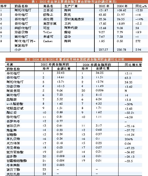 2005年世界调血脂市场逐步走低,增长率只有6.8%;相反,我国却以28.64%的高增长率反映出市场一片兴旺。