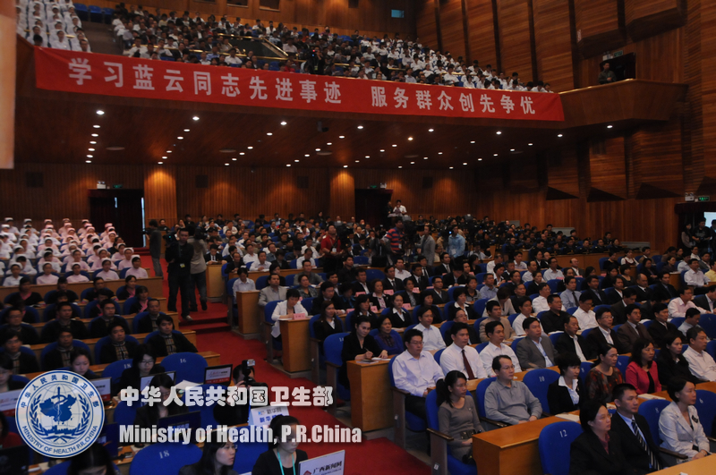 2011年11月23日,卫生部和广西自治区党委在南宁共同举办追授蓝云同志荣誉称号命名表彰大会暨先进事迹报告会,卫生部党组书记张茅,广西自治区党委书记、自治区人大常委会主任郭声琨出席会议,分别向蓝云同志妻子颁发蓝云“人民健康好卫士”和“自治区优秀共产党员”荣誉证书,并做重要讲话。中央创先争优活动领导小组办公室副主任傅思和,广西自治区主席马飚等自治区党政领导,卫生部办公厅、机关党委、药政司领导出席会议。自治区创先争优活动领导小组成员、办公室全体同志,自治区卫生厅领导,自治区、南宁市党委和自治区级国家机关各部委办厅局、各人民团体、驻邕高等学校创先争优活动领导小组组长、办公室主任,自治区卫生系统、大化县党员干部代表1500人参加会议。 在命名表彰大会上,张茅说,蓝云同志从青少年时代就深切地感受到山区群众的疾病痛苦和就医困难,毅然选择了医生这个职业,担负起救死扶伤、治病救人的责任。作为一名共产党员,他始终坚定理想信念,在平凡的岗位上无私奉献,忠实地践行全心全意为人民服务的宗旨。作为一名乡村医生,他十几年扎根基层,千方百计为患者解除病痛、减免医疗费用。不幸身患绝症后,他仍坚持为瑶乡百姓看病,并动员妻子学医从医,把毕生心血献给了他所热爱的农村医疗卫生事业。蓝云同志的感人事迹,展示着共产党员的先进本色和白衣天使的崇高风范,蕴含着中华民族的伟大精神,体现着医者的仁心大爱,不愧为共产党员的优秀代表,不愧为新时期医疗卫生工作者的时代楷模。 张茅指出,长期以来,医疗卫生队伍刻苦勤勉,甘于奉献,为保障人民群众健康,维护社会稳定作出了重要贡献。特别是在面对重大传染病威胁、自然灾害侵袭的关键时刻,医疗卫生人员冲锋在前,舍己救人,诠释了救死扶伤的职业信仰,体现出高尚医德和优良医风。在他们中间,涌现出一大批像蓝云同志那样的先进典型,学习和宣传优秀典型,就是让先进和优秀成为广大医疗卫生工作者的精神追求和自觉行动。张茅要求广大医疗卫生工作者继承和发扬蓝云同志的崇高精神,学习他始终牢记党的宗旨,以救死扶伤为己任,倾心为民的精神境界;学习他爱岗敬业、恪尽职守、精益求精的优秀品质;学习他扎根基层、无私奉献、淡泊名利的高尚情操;学习他生命不息、奋斗不止的顽强精神。 张茅强调,深化医药卫生体制改革,是深入贯彻落实科学发展观的重大实践行动,是维护十几亿群众健康福祉的重大民生工程,必须坚持保基本、强基层、建机制,高度重视农村、基层和中西部地区卫生事业发展。乡村医生植根广大农村,长期以来承担着农村地区基本医疗和公共卫生服务的重任,是维护7亿多农村居民健康的“守护人”。党中央、国务院对基层医疗卫生建设非常重视,各有关部门出台了关于加强乡村医生队伍建设的专门文件,完善乡村医生补偿、养老政策,提高乡村医生的服务水平,让农村居民能够享受到安全有效、方便价廉的基本医疗卫生服务。 郭声琨要求全区广大党员干部以蓝云同志为榜样,始终把人民放在心中最高位置,自觉把个人理想追求同党和人民的事业紧密联系起来,永做为民排忧解难的贴心人,始终保持共产党人的政治本色,守得住清贫,耐得住寂寞,抵得住考验,永做党的优良传统的弘扬者。 在蓝云同志先进事迹报告会上,大化县创先争优办工作人员、蓝云的亲属、同事和患者代表分别登台演讲,用真实的情感、朴素的语言,再现了蓝云同志发扬救死扶伤伟大精神,为瑶乡百姓健康无私奉献的感人故事,深深地感染和教育了现场的观众。 报告会会议开始前,张茅、傅思和、郭声琨、马飚等领导亲切接见了蓝云同志的亲属代表。